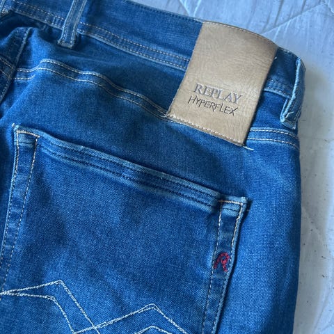 Selger en Replay Anbass Hyperflex jeans i str W31 L32 — kjøpt ny for 2299kr for ca. 4 år siden, men er nesten ikke brukt. Ingen slitasje eller merker, fremstår som ny. Medium blå, slim fit med veldig god stretch.