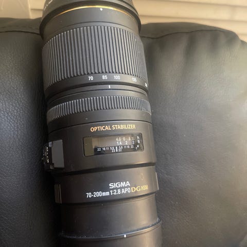 Sigma 70-200mm F2.8 APO EX DG OS HSM objektiv med optisk stabilisator og høy lysstyrke med Canon fatning.