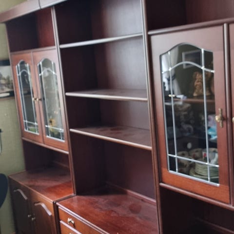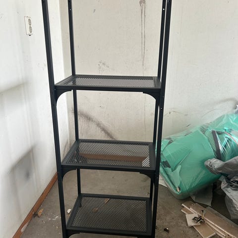 Pent/godt brukt hylleseksjon med kurver. Noe slitasje på topplaten og ene siden av topplaten