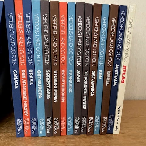 Selger 6 bind fra serien Verdens Land og folk utgitt av Gyldendal Norsk forlag.