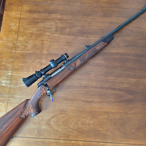 Tre punkt sikkring. Trykkpunkt avtrekk. Flutet løp. God stokk. God demper. Picatinny skinne.