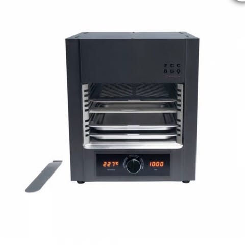 Grandhall Egrill elektrisk grill med halogenrør og infrarød teknologi. Effekt på 1500W med 2 x 750W halogenrør. Grillflate i porselensemaljert støpejern på 30 x 45 cm. Konstruksjon i rustfritt stål. Vekt 11 kg, mål: 55 cm bredde, 23 cm høyde, 40 cm dybde