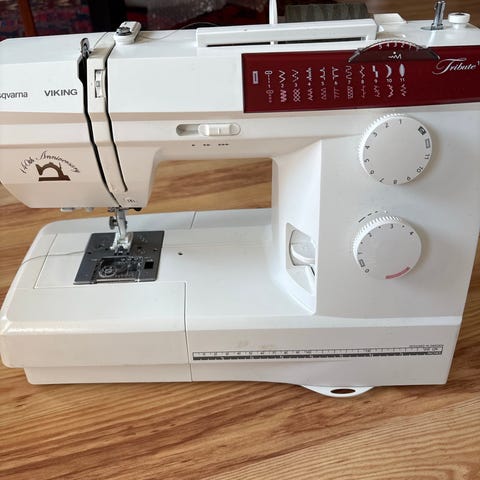 symaskinen leies ut 100kr per dag eller 400 per uke. 500kr depositum Leveres med noen sysaker. Saks, målebånd sprettekniv og hvit tråd. Fås kjøpt annen farge tråd hos meg. Selger også forskjellige type stoffer.