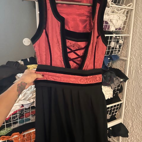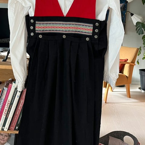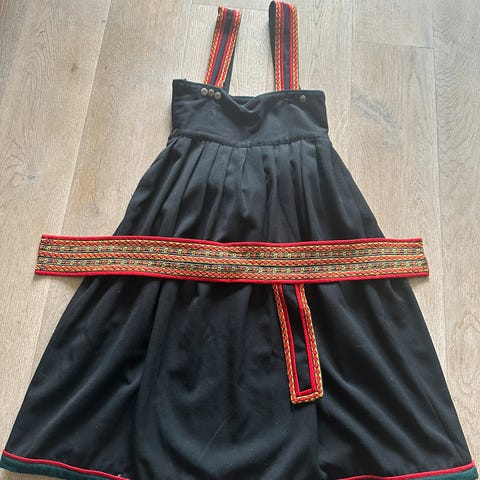 Skjorte følger ikke, men forkle kan bli med. Har også bunadsko billig til salgs om størrelse passer.
