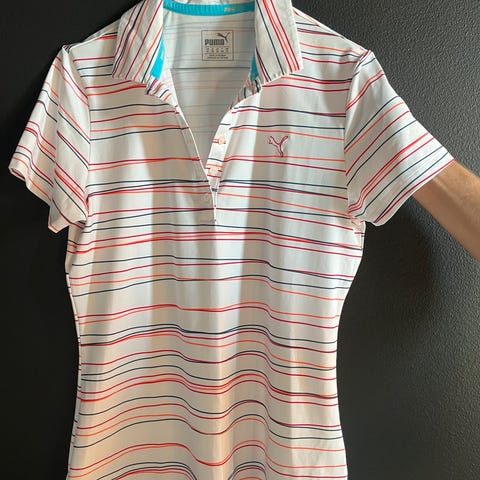Peak Performance poloshirt i blå med hvite striper, laget for damer. Skjorten har kort erme, hvit krage og knapper i front. Materialet er mykt og egnet for fritidsbruk.