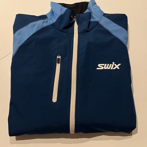 Swix Windbreaker Jakke i rød farge, størrelse S, designet for kvinner. Jakken har en frontglidelås, to sidelommer med glidelås, og er laget av lett materiale som egner seg for utendørsaktiviteter og sport. Hel og pen.