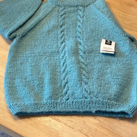 Genser er 42 cm lang, buksen er 53 cm totalt og benlengden er 33 cm. Strikket i superwash ull, vaskeanvisning følger. Sender med strikk til å tre inn i buksa i livet( midjemål vet jo ikke jeg) Kan sende mot porto kr 69 med PostNord.Kan også hentes her. 😊