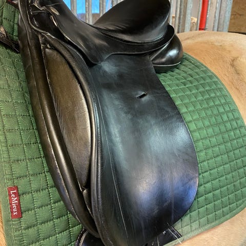 Selger min dressursal da den dessverre er litt for stor for meg og ikke passer hesten min. Salen er 17” og har tidligere vært brukt på en oldenburger (163 cm). Den er i god stand