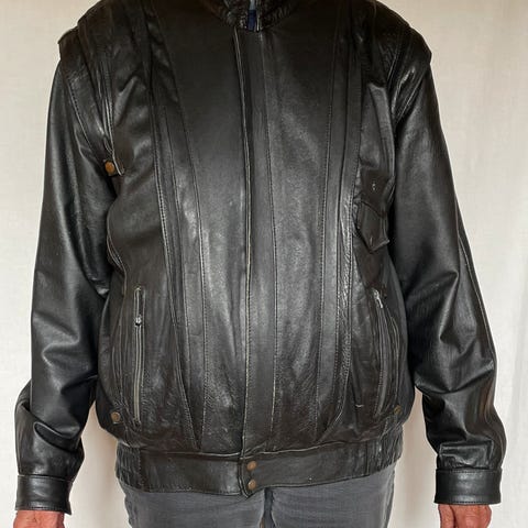 Super foret lærjakke med frynser. En innerlomme og tre lommer utenpå. Tøffe detaljer..
