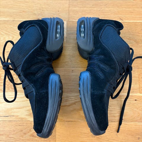 Pent og lite brukt i en danseforestilling. dance sneakers fra Bloch er en lav modell. Skoen har luftdemping i hælen, og er derfor høyere å stå på enn de andre modellene. Skoen har en bred lest, den er lett og smidig, og den kan brukes til all slags form for dans og trening.