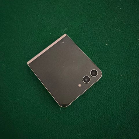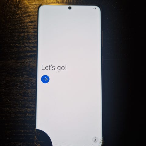 Liten skade på skjermen og på baksiden. Lader kun til 85%. Original eske og smart view wallet følger med.
