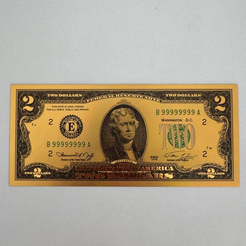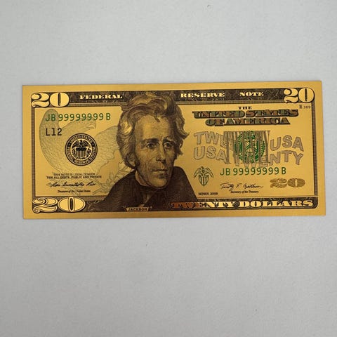 Knall tøff, Gull Forgylt Amerikansk seddel. Den er helt som ny og har vert innrammet. Det anbefales og ha den i en transparent ramme, da den er like dekorativ fra begge sider.