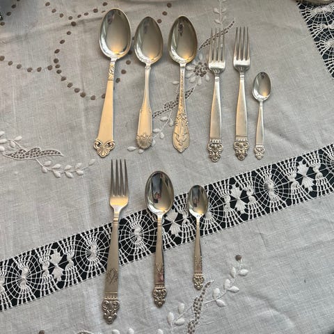 ❤️2: Dessertskjeer, 5 stykk, pene, ugravert, ca 17,7 cm, enhetspris kr 800,-