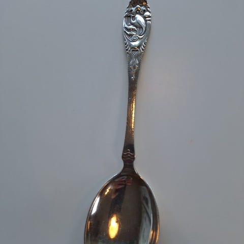 norsk design jugend jugendstil 830 830S silver øse saus stork påfugl påfuggel gaffel skje fugl antikke antikt skjeer spiseskjeer småskjeer små skjeer 15 cm 18 cm 20 cm 21 cm Norwegian cutlery jul julegave julepresang trygvesilver tryggsilver bryllup bryllupsgave bryllupspresang gave presang barn barnebarn