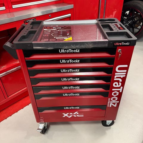 Pipeset, tenger, spisstang, avbiter, tigersag, oljekanne, oljefilter set. Lykt. Div caliper verktøy.