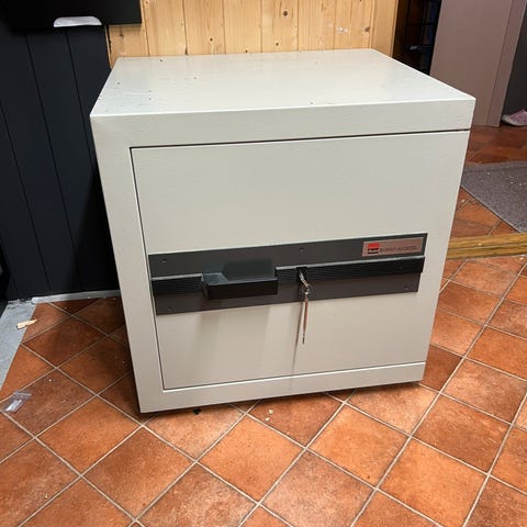 Da jeg ikke har plass til å lagre denne, vil safen bli kjørt på fyllinga om ikke noen ser seg nytte i denne.