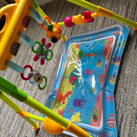 Enkel babygym i plast fra Infan-land. Denne er veldig pent brukt. Lett å ta fra hverandre og sette opp, så hadde denne med på reiser :-)