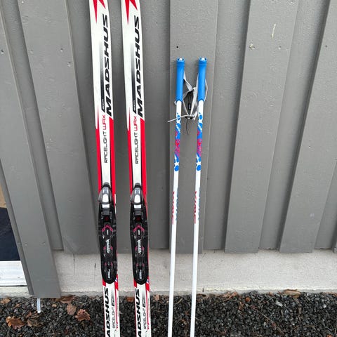 Madshus langrennski (smøreski) og Swix Frost skistaver(rosa) selges.