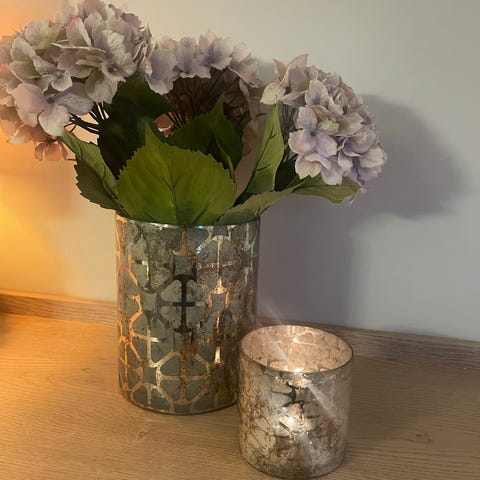 Helt nytt,kan både brukes som vase eller lysfat.i pakken er det et stort lyslykt og en liten.De er veldig dekorative,selges grunnet fått som gave men har ikke behov for de.