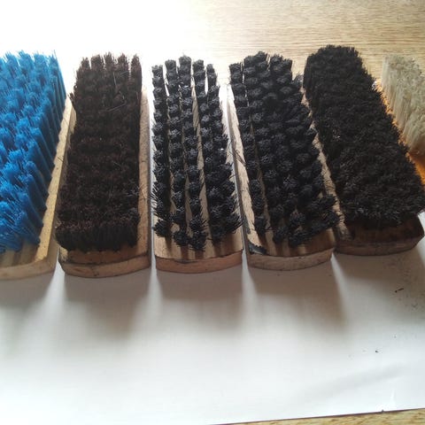 VINTAGE dobbel Skobørste / sko-kost i tre m/ kost for påføring og håndtak selges for 30 kr. stk.