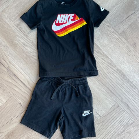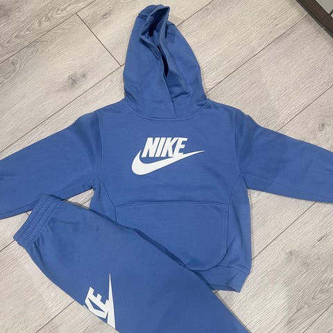 Nike joggesett str. 110. Bukse og jakke i en mørkeblå farge. Pent brukt, eneste anmerkning er noen små nupper.