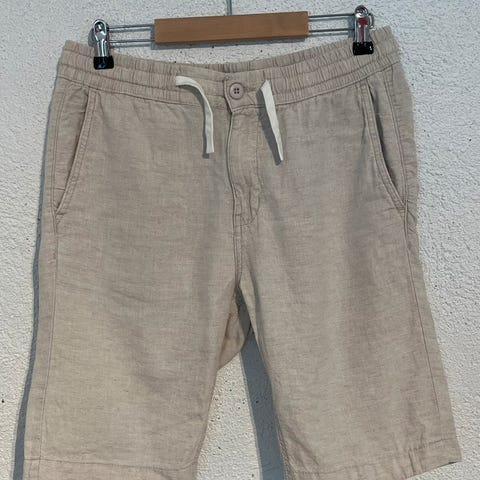 Stilig H&M linshots-bukse i beige, størrelse EU 48 med relaxed fit. Buksen er pent brukt og passer perfekt til både hverdags og mer avslappede antrekk. Komfortabel og lett å style med forskjellige overdeler.