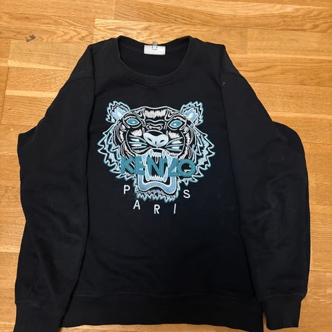 Selger en stilig Kenzo Paris genser i mørk navy med neon-grønne detaljer og Kenzo-tigerlogo på brystet. Genseren er komfortabel, laget av myk bomull, og passer perfekt til både hverdagsbruk og som et statement-plagg.