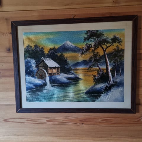Gammelt Maleri bilde i treramme.