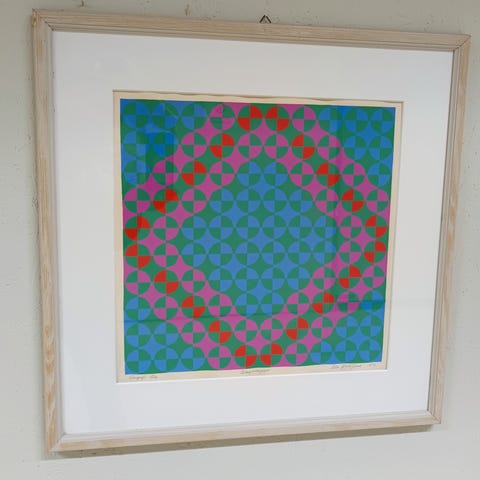 Signert av kunstneren nederst til venstre. Det er noe slitasje/bruksmerker på rammen (se bilder) Har prøvd så godt jeg kan å ta bilder av hele verket.