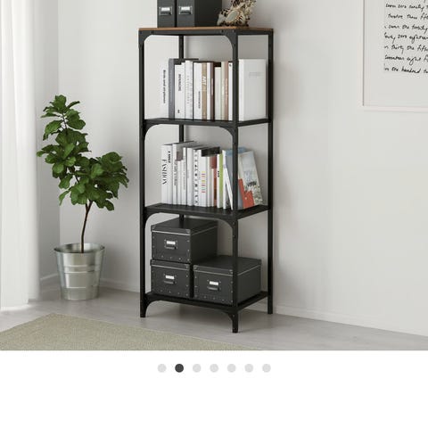 Svart hylleseksjon fra IKEA (serie Fjällbo). Mangler topplate, har stått oppned hos meg (bilde nr 2) for å oppbevare kurv under.