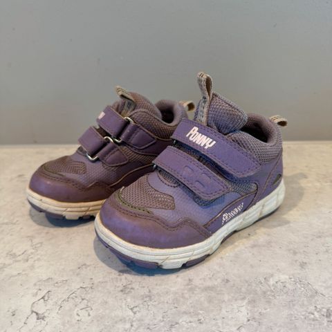 Pent brukte vanntette sko i størrelse 24. Litt slitasje foran på venstre sko (se bilde), men det gjør ingenting for bruken, de er fortsatt vanntette.