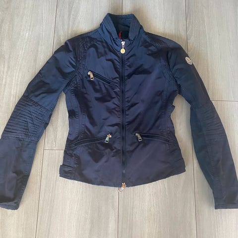 Mørk blå vår/sommer/høst dunjakke for dame , meget pent brukt. Moncler str 5 tilsvarer L/XL