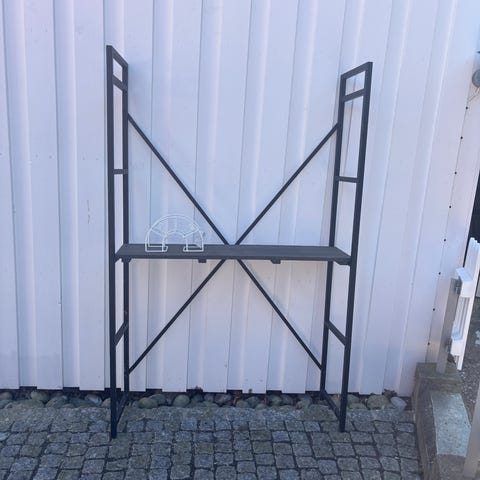 Hylle som er brukt ute i garasje, mye igjen.