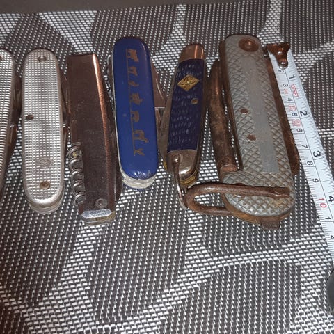Det største knivbladet er noe slitt, ellers er de andre funksjonene meget fine.