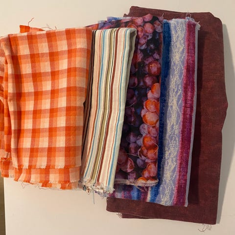 Blå, tan/grå, brun, tan, gul/oransje/lila