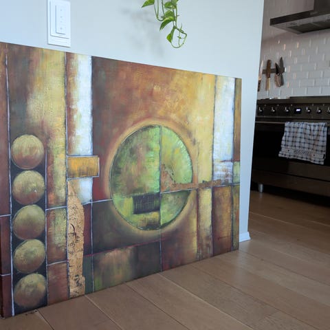Abstrakt Maleri Blå Rød Hvit