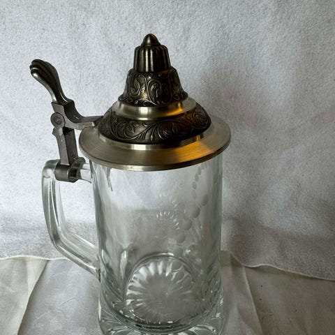 Selges samlet. Begge er merket W. Germany. Den ene har skriften : Original BMF Bierseidel.