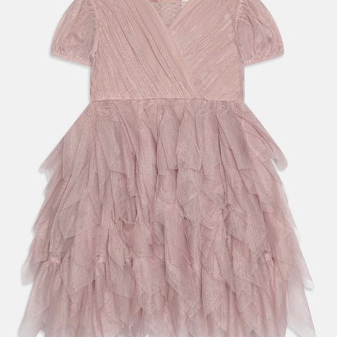 Rosa kjole med glitter og sløyfe bak. Str 122
