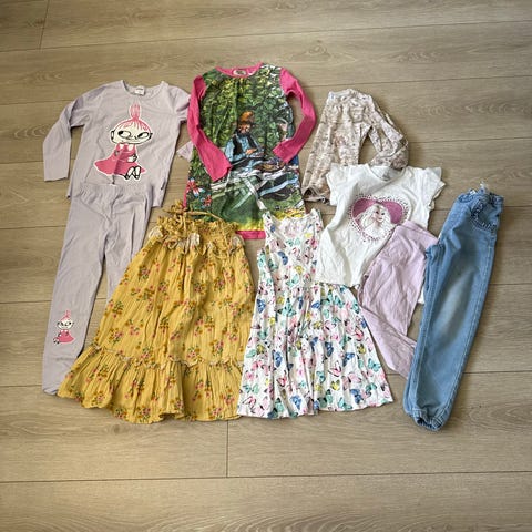 Stor pakke med div klær. De meste er ubrukte og ble bare liggende i skapet.