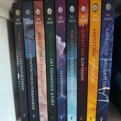 Amuletten bok 1, 2, 3 (pocket) og 5 ( innbundet)