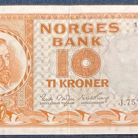 NORGE 10 KRONER 1961 U. KV. 0. KATALOG PRIS 1 stk. 330kr