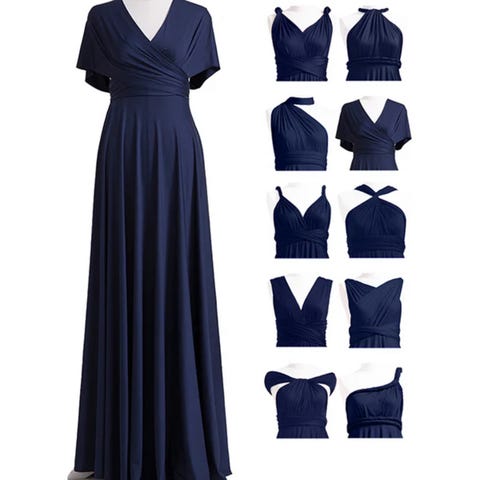 Infinity-kjole som gir mange kjoler i ett ved enkelt å knyte den på ulike måter. Perfekt som gjest i bryllup eller andre arrangementer.