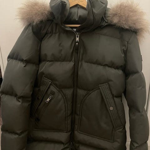 Veldig varm og god parkas fra pajar. Denne er veldig lite brukt. Fargen er khaki/grå pelsen på hetta kan tas av. 90% dun.