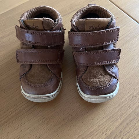 Skofus sko til baby. Brukt av ett barn. Litt merker på Skofus logoen foran siden de er krabbet med, og ett merke foran på den ene skoen. Mye god sko igjen til andre barn!