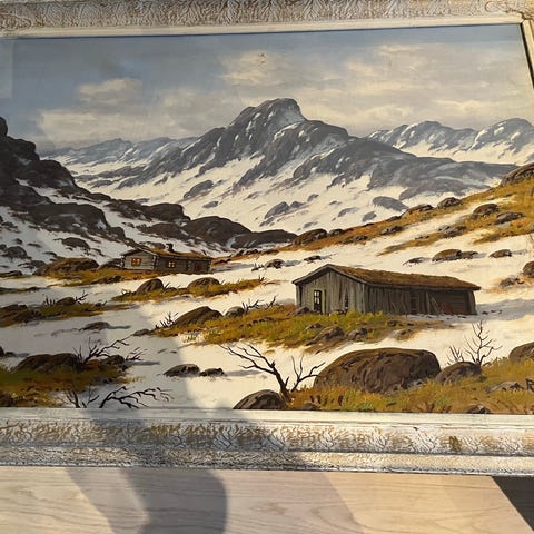 R. Lotte Landskapsmaleri Fjellandskap Olje på lerret