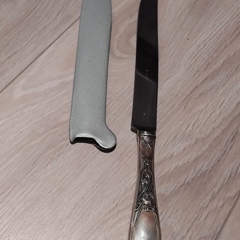 trancherkniv, carvingskniv, stekekniv, kjøkkenkniv, sølvplett håndtak, rokokko, art nouveau, vintage kniv, serveringskniv, kjøttkniv, borddekking, Vera Lucino, stainless steel, retro kjøkken, antikk stil