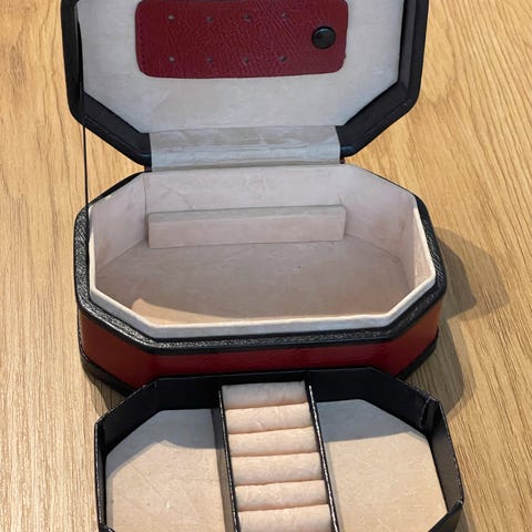 Smykkeskrinet ser helt nytt ut inni, eneste er toppen som har fått litt skrammer, se bilder