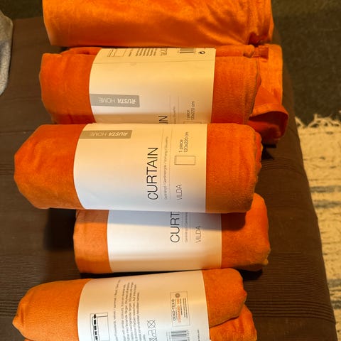 4 lenger lyseblå gardiner fra Rusta selges da de dessverre ikke passet helt i fargen mot sofaen vår på hytta🥴