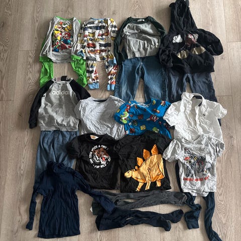 Klespakke gut, str 98, pent/godt brukt, 4 gensere, 4 bukser, 4 t-shirts, 2 pysj+