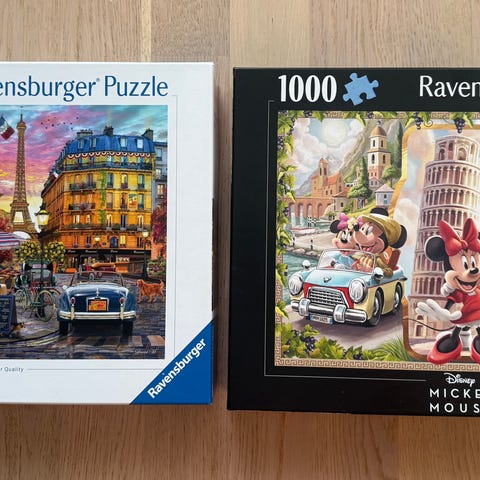 Ravensburger og tactic puslespill med totalt 1500, 1000 og 500 biter. Inkluderer flere motiver som snødekte landskap, dyr og et offshore plattform. Puslespillene er laget av papp og egnet for voksne og barn.